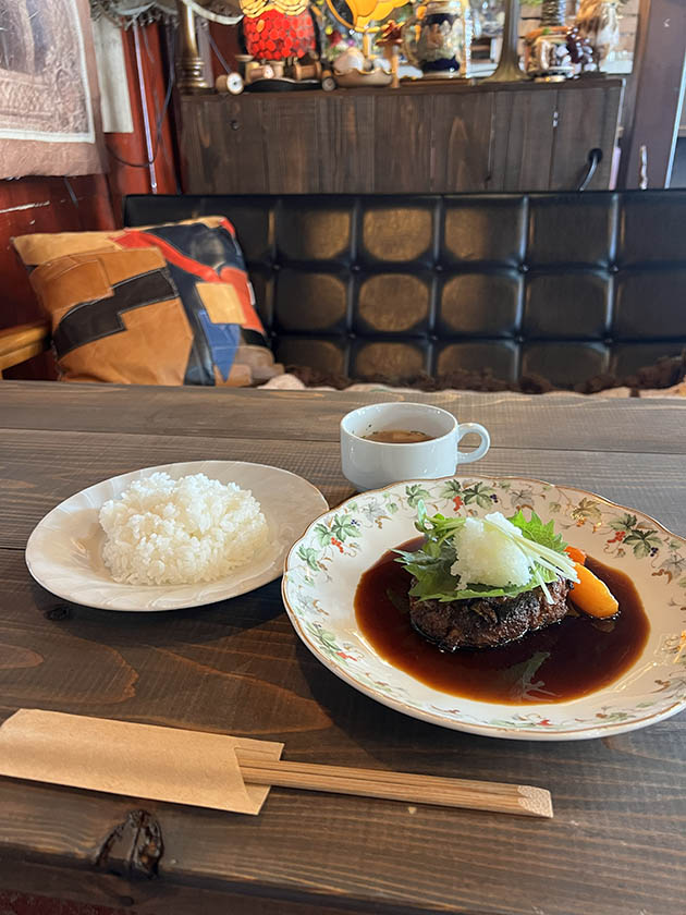 異世界のような喫茶店で味わう絶品ハンバーグ