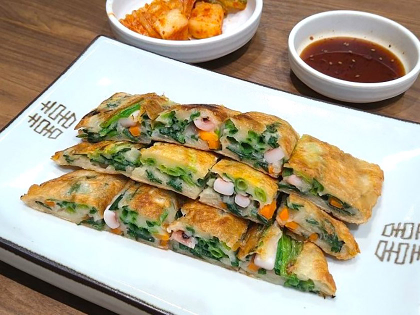 こちらは、パチヂミ(イカ入り)。もっちり弾力があり、具材の野菜はたっぷりで食べ応え抜群! あっさり味のタレとマッチしていて、さくさくと食べ進められこちらもペロリです。