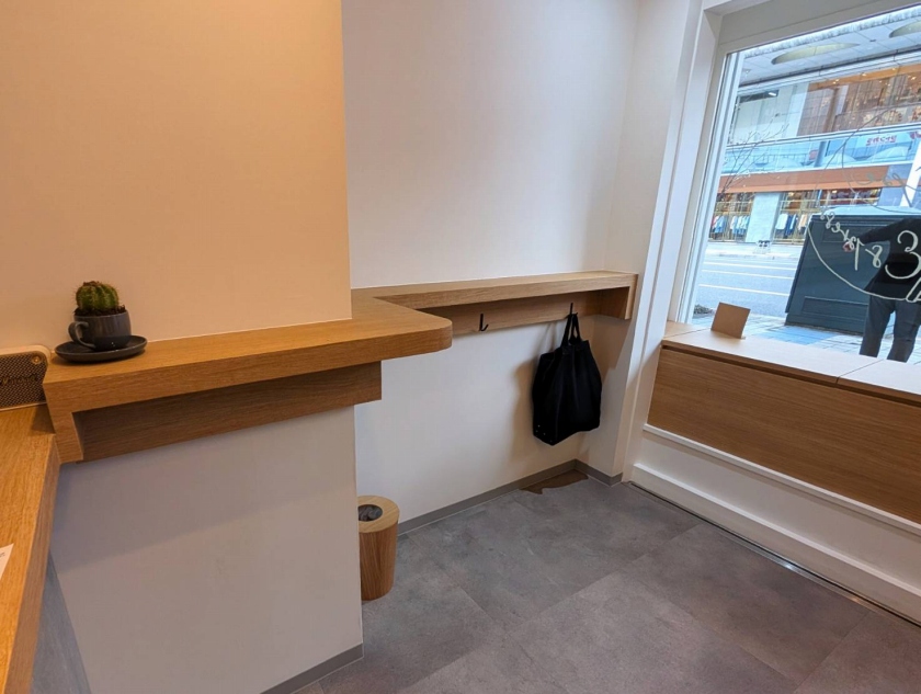 スタンディングのイートインスペースのほか、店頭にベンチが用意されていて、その場でいただくこともできますよ。