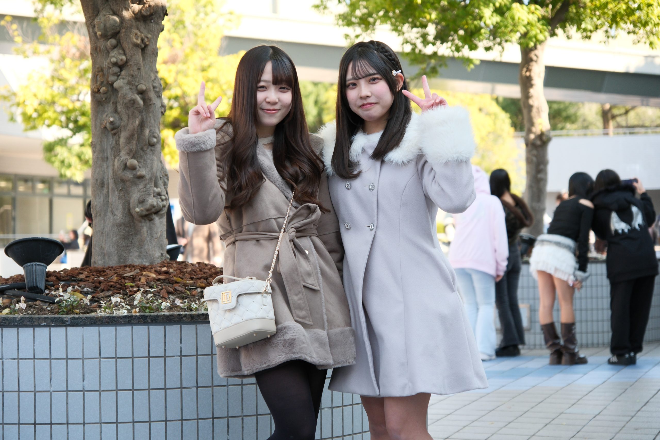 お二人はFRUITS ZIPPERのファンとのこと! おそろいの黒コートで仲の良さが感じられます。