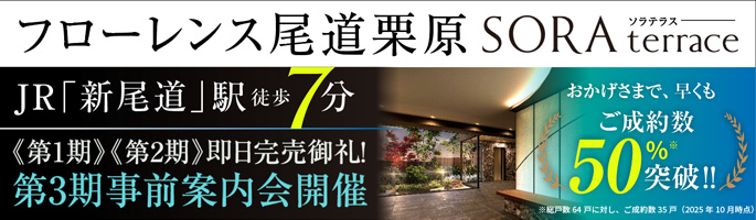 今話題となっている、尾道市栗原町に誕生する新しい分譲マンション『フローレンス尾道栗原ソラテラス』。みんなの熱視線を集めるワケは、尾道の中心部からほど近い国道184号線沿い、新尾道駅から徒歩7分というアクセスの良さ! 生活圏内には衣食住を支えるスポットが揃っていて、これから新生活を始めるファミリーにぴったり。充実の標準設備や最新セキュリティを備えたマンションの魅力とともに、マンション建設地周辺の注目スポットをご紹介していきます。