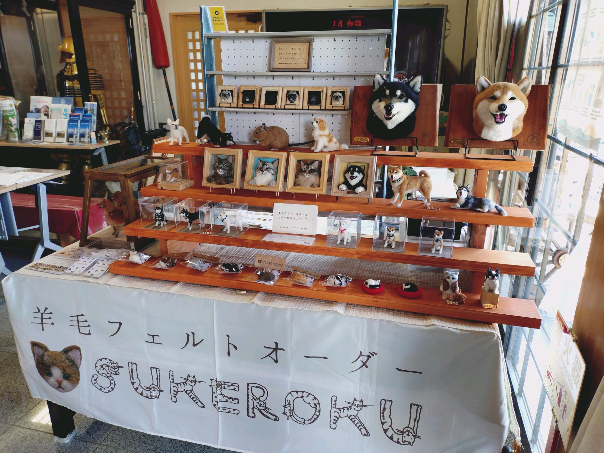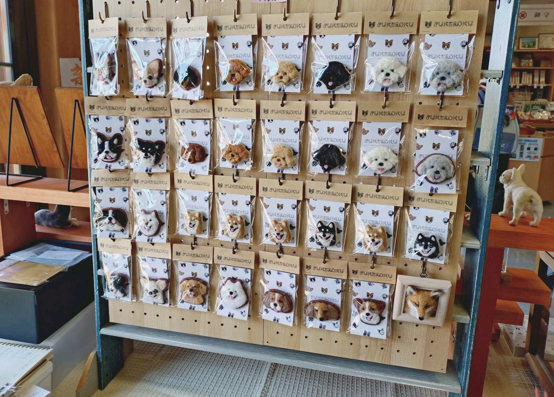 羊毛フェルト作家・SUKEROKUさんの作品も販売。額縁に入ったにゃんこの羊毛作品やわんこのブローチがずらり…! 肉球も舌もリアルに再現されていて、とっても温かみを感じられましたよー♡