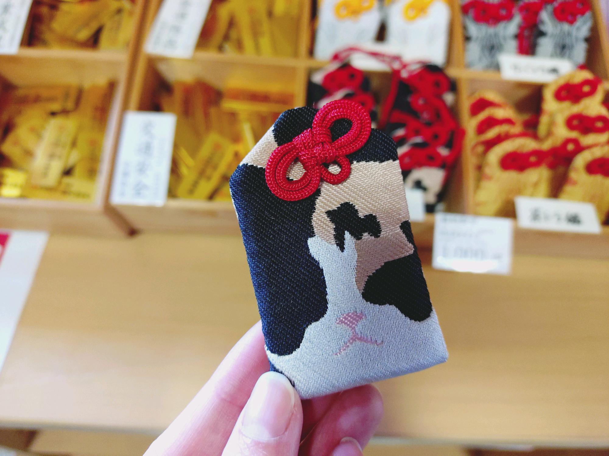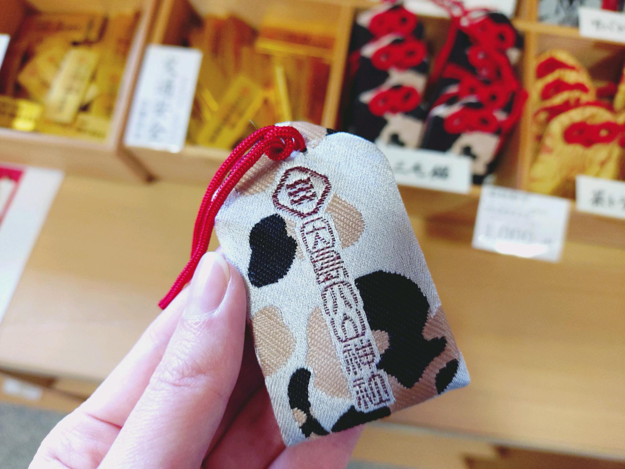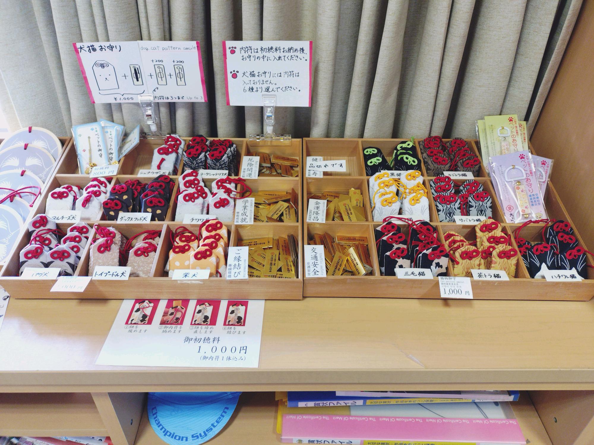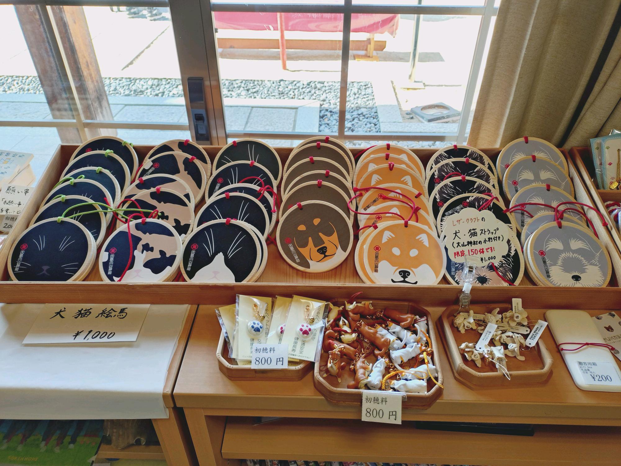 授与所では、猫や犬の絵柄がかわいらしいお守り・絵馬を頒布。お守り1,000円は、学業成就や縁結びなど、6種類の「御内符」から1つ選んで中に入れます。三毛猫やシュナイザーといった15種類が用意されており、個性が強くなりすぎないようにするために、あえて目を入れないデザインで考案されたとのこと。裏にはさりげなく尻尾が描かれているのがキュート♡ 絵馬1,000円には、健康成就の願い事を書かれる方が多いようです。