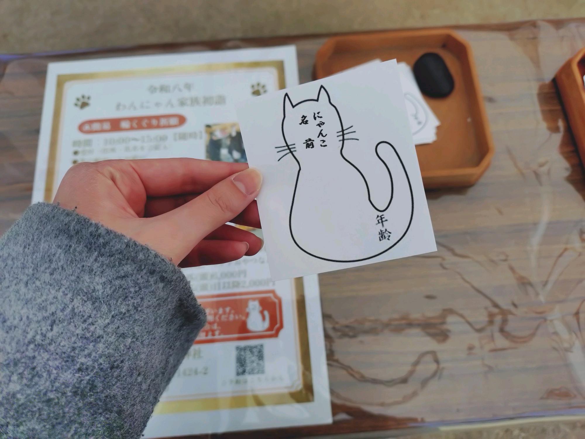 飼い猫・飼い犬と一緒に行う「簡易輪くぐり」1匹3,000円。お祓いを受けた後、3回輪をくぐり無病息災を祈ります。猫・犬と一緒にお参りができない場合でも、「形代(かたしろ)」に名前と年齢を記入して祈願できるのがうれしい!