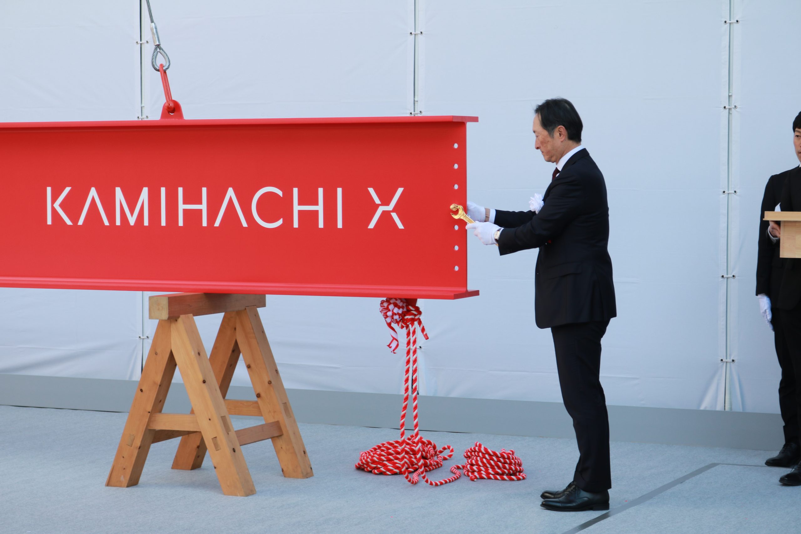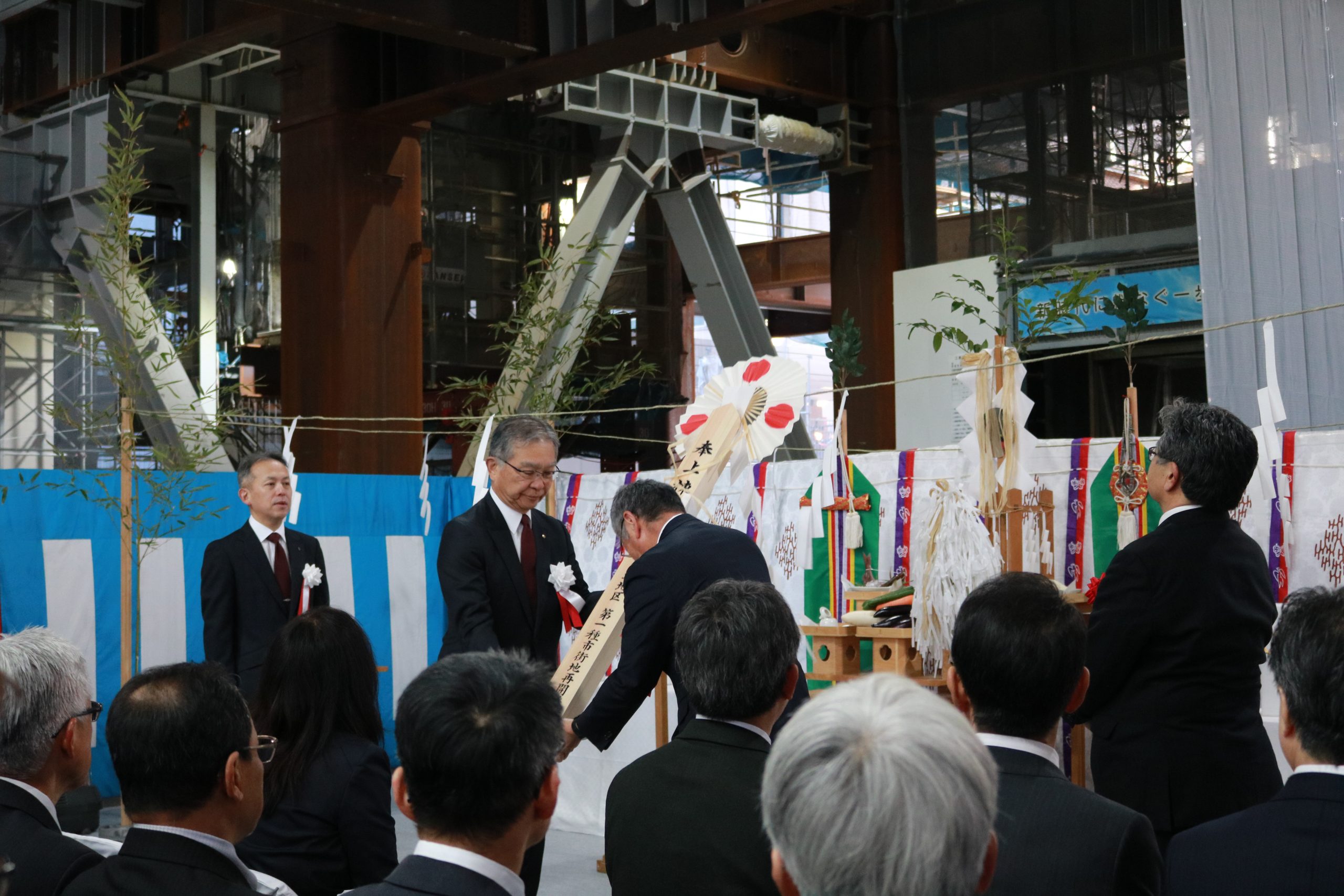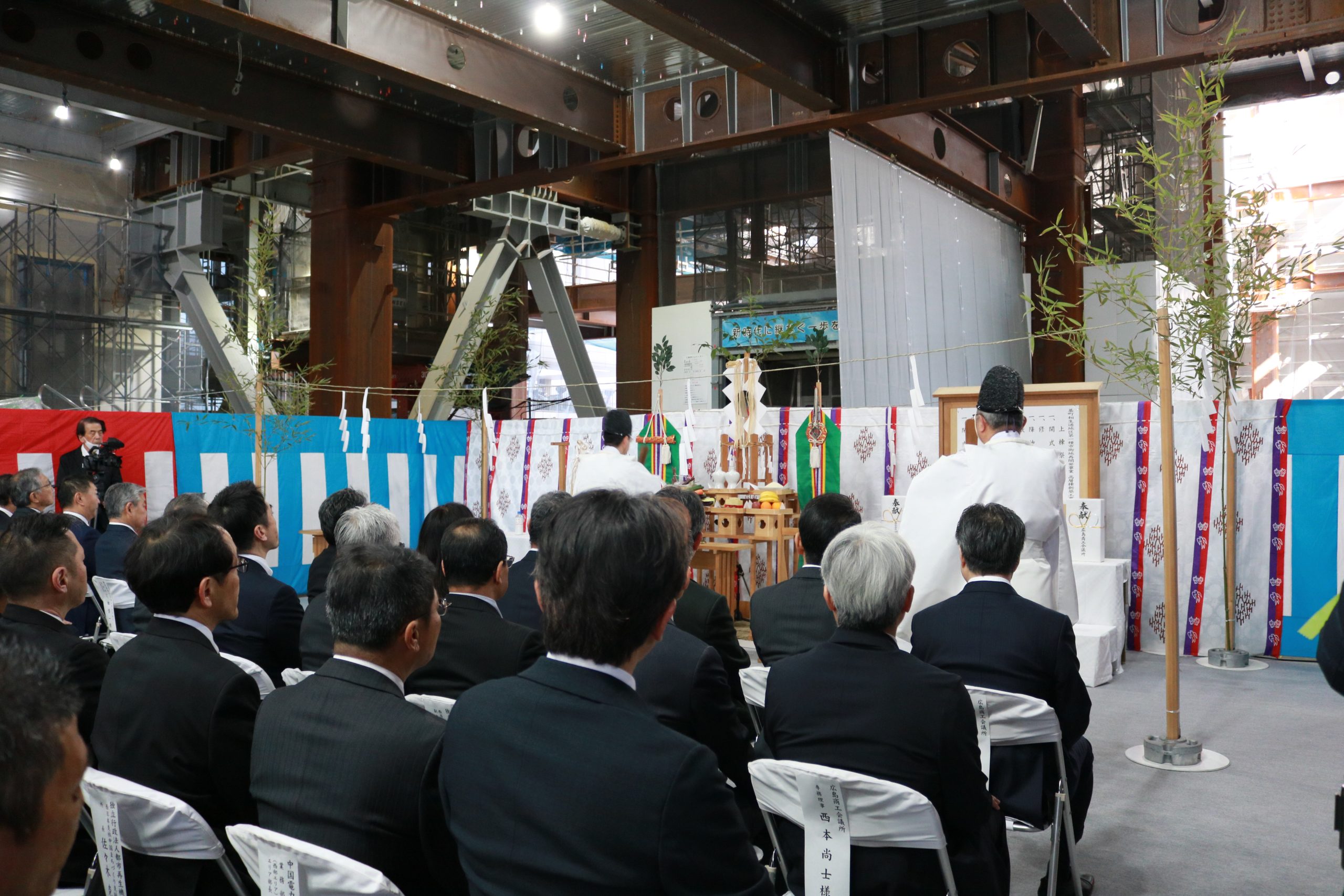上棟式の後には棟上げ行事も実施されました。長さ6m、重さ1.2tの鉄骨をクレーンで持ち上げる様子は、圧巻! 関係者からは「広島駅も新しくなっているので、駅とカミハチ両方で街を盛り上げていきたい」との声もありました。