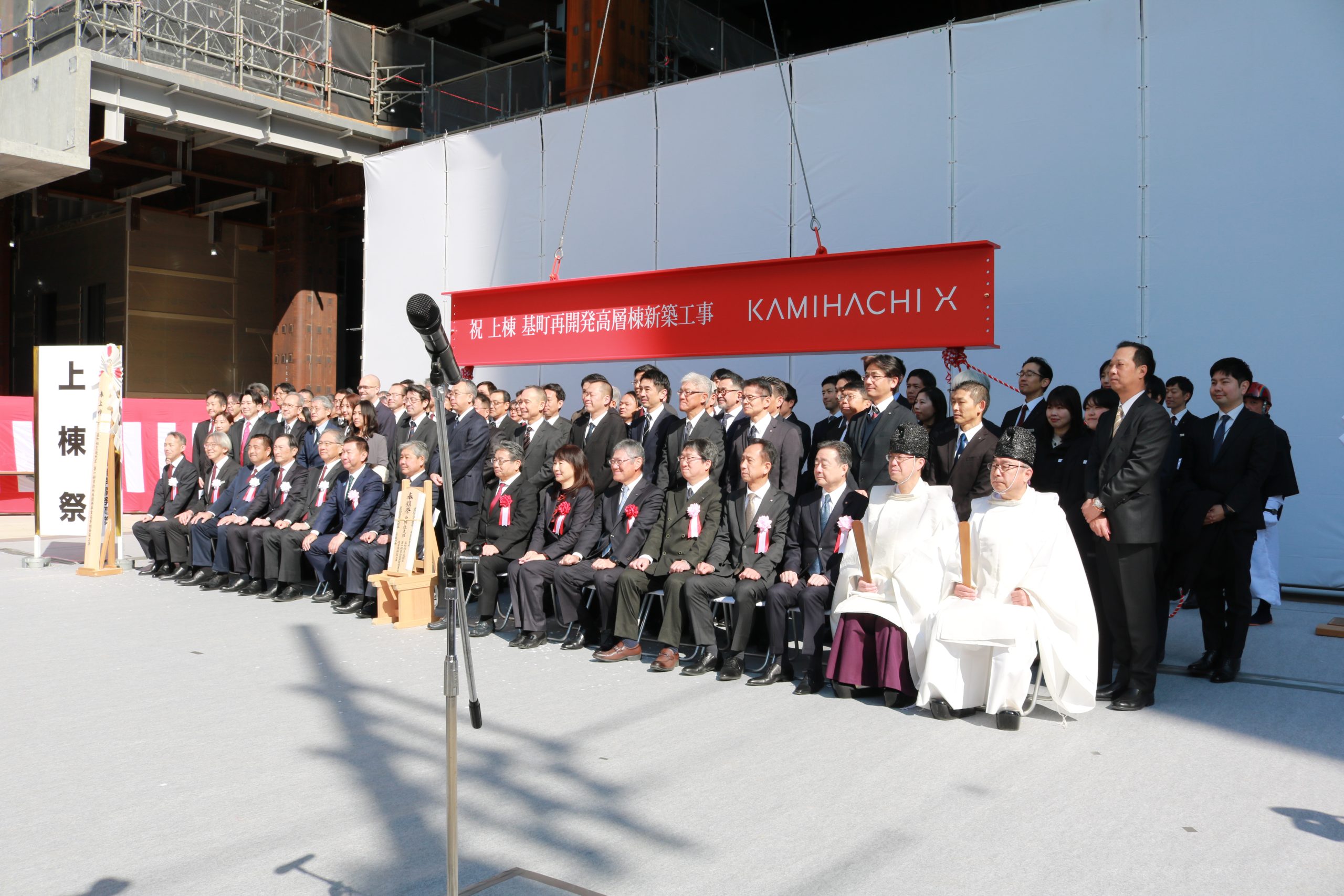 広島市中心部の再開発事業の一つとして現在建設中の31階建て高層ビル『KAMIAHACHI X(カミハチクロス)』。本日上棟式がおこなわれ、2027年春の完成に向けて工事の安全が祈願されました。